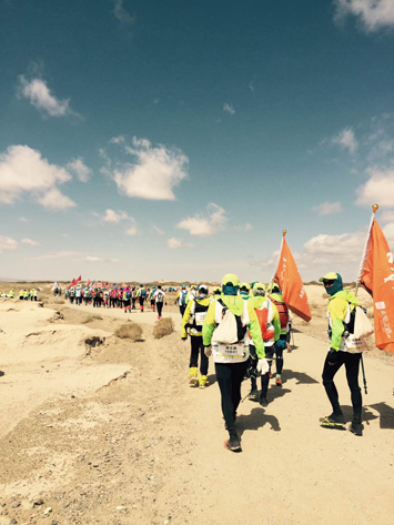 5月22日戈壁挑戰(zhàn)賽開(kāi)賽首日,來(lái)自49所院校商學(xué)院的2000多名戈友再一次齊聚在阿育王寺,在塵沙和烈風(fēng)中鳴槍起跑。不遠(yuǎn)處,阿育王塔依然矗立。于是,千年的滄桑和青春的激揚(yáng),就這樣融合進(jìn)了那黃土漫漫、蕩氣回腸的茫茫弋壁中。在這群隊(duì)伍中,有一群來(lái)自大集的勇士,始終最積極、最燦爛、最耀眼的姿態(tài)將自己展現(xiàn)在不見(jiàn)邊際的天地盡頭,這便是由公司董事長(zhǎng)帶領(lǐng),對(duì)戈壁之行充滿(mǎn)著無(wú)限的幻想和探索的大集人。