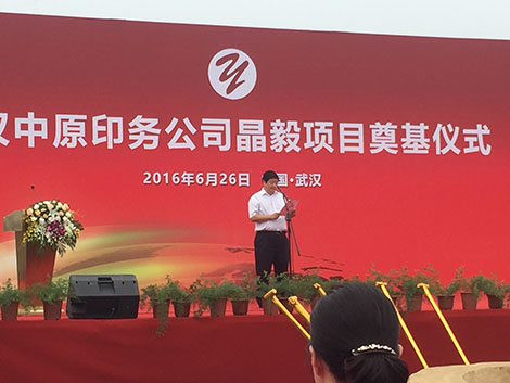 東西湖臺(tái)商投資區(qū)主任代表東西區(qū)各級(jí)領(lǐng)導(dǎo)發(fā)表重要講話(huà),對(duì)武漢中原印務(wù)公司晶毅項(xiàng)目在此舉行奠基表示最衷心的祝賀和寄予深切的厚望!