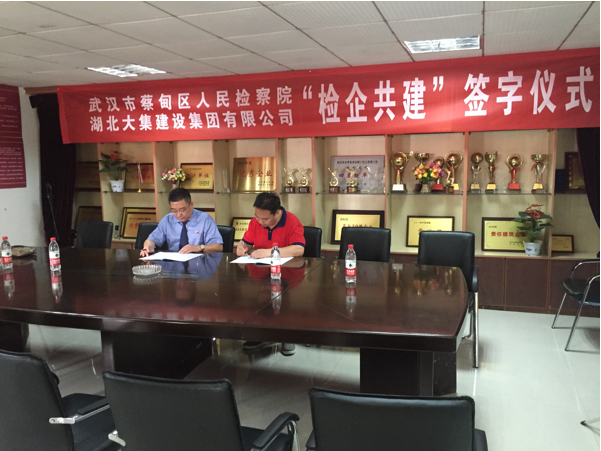 隨后武漢市蔡甸區(qū)人民檢察院與湖北大集建設(shè)集團(tuán)有限公司在集團(tuán)公司會(huì)議室舉行“檢企共建”簽約和授牌儀式。共同簽署了《檢企共建協(xié)議書》。集團(tuán)公司董事長(zhǎng)徐濤、總經(jīng)理徐遠(yuǎn)征對(duì)蔡甸區(qū)檢察院給予企業(yè)的幫助和支持表示感謝,并號(hào)召公司全體員工要提高思想認(rèn)識(shí),在蔡甸區(qū)人民檢察院的指導(dǎo)下,認(rèn)真開展預(yù)防職務(wù)犯罪工作,確保企業(yè)正常經(jīng)營(yíng)活動(dòng)的有序開展。