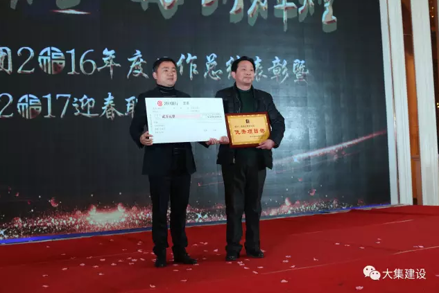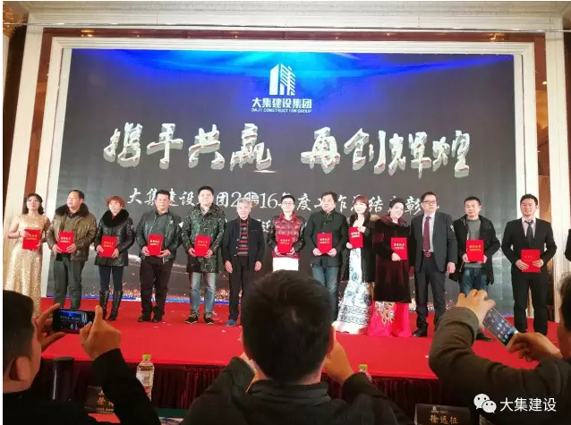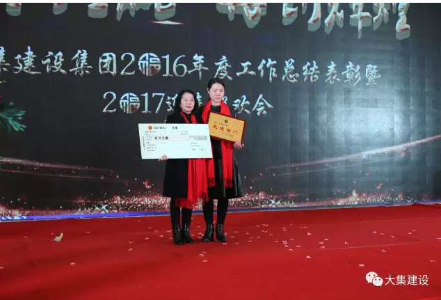 為樹立典型、激勵先進,讓廣大員工在工作中奮勇向前,形成人人爭先的良好企業(yè)文化氛圍,2016年大集建設(shè)總結(jié)表彰大會上,集團公司副總吳家珍女士代表集團公司宣讀了《關(guān)于表彰2016年度優(yōu)秀、先進集體與個人的決定》,并邀請嘉賓上臺頒發(fā)了五大獎項及先進個人獎:特別敬業(yè)獎、特殊貢獻獎、先進部門、優(yōu)秀項目部和外部業(yè)務(wù)拓展獎。