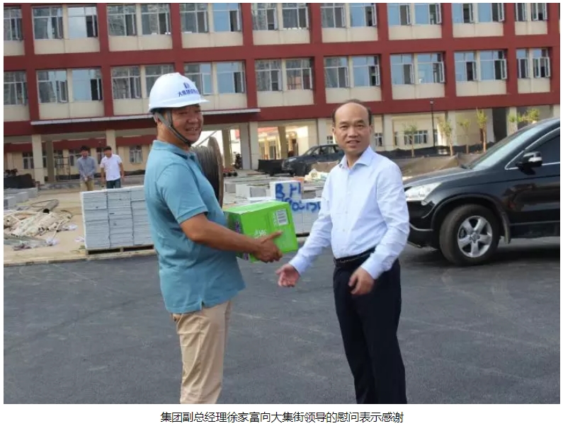 炎炎夏日送清涼,絲絲關(guān)懷暖人心。7月24日,蔡甸區(qū)大集街黨工委書記曹克斌、副書記吳永峰,工會副主席劉浩等領(lǐng)導(dǎo)蒞臨南湖(新光)小學(xué)項目開展送清涼慰問活動,為項目上奮戰(zhàn)在高溫一線的工作人員送來綠茶、礦泉水、十滴水、人丹等防暑降溫物資,集團(tuán)副總經(jīng)理徐家富、工程部部長周偉陪同慰問并向各位領(lǐng)導(dǎo)詳細(xì)講解了項目建設(shè)情況。