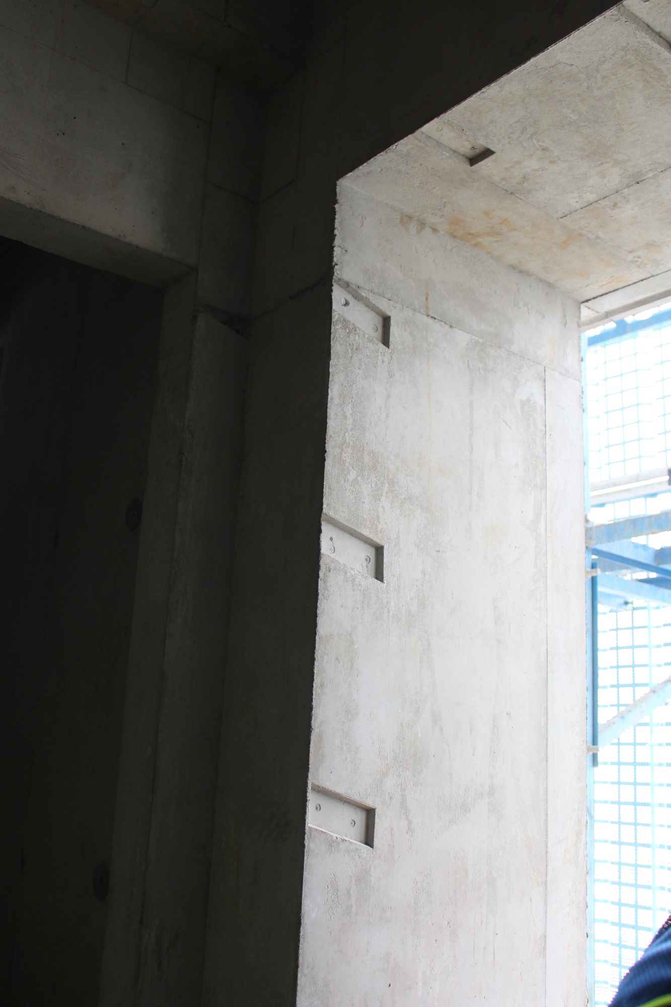 墻面混凝土施工采用鋁模壓槽,便于管線安裝,效果好,質(zhì)量優(yōu)