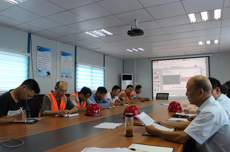 隨后,工程部副部長陳超對各標段在聯合大檢查中暴露出來的問題進行了逐一梳理,并利用PPT向大家細致地說明了各標段在安全、質量等方面出現的問題,要求各標段接下來有針對性地做好落實整改工作。緊接著,工程部質量主管王均家進一步針對該項目的安全質量問題作出總結,王工表示,項目部各標段一定要多溝通多聯系,統一思想,步伐一致,齊心協力做好項目;要重視質量、狠抓安全,提高質量安全管理意識;要認真落實每次項目會議的工作內容,嚴格按照施工方案、施工圖紙規(guī)范施工。