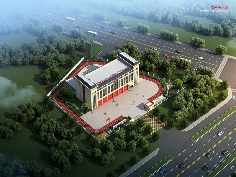 大集消防站項(xiàng)目位于蔡甸區(qū)大集街知音湖大道與天鵝湖大道交叉口西南角,總建筑面積3848.62平方米,平行知音湖大道布置1棟4層業(yè)務(wù)大樓,南端垂直業(yè)務(wù)大樓附建1棟1層食堂,另外配套有訓(xùn)練塔、門(mén)房等輔助設(shè)施。業(yè)務(wù)大樓和食堂外側(cè)為環(huán)形消防車(chē)道(兼作訓(xùn)練跑道),項(xiàng)目分別朝向知音湖大道和天鵝湖大道開(kāi)設(shè)主、次出入口。
