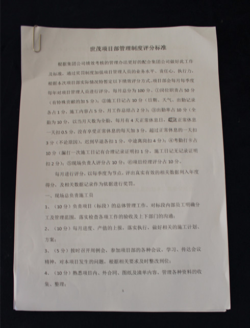 項目部管理制度評分標準