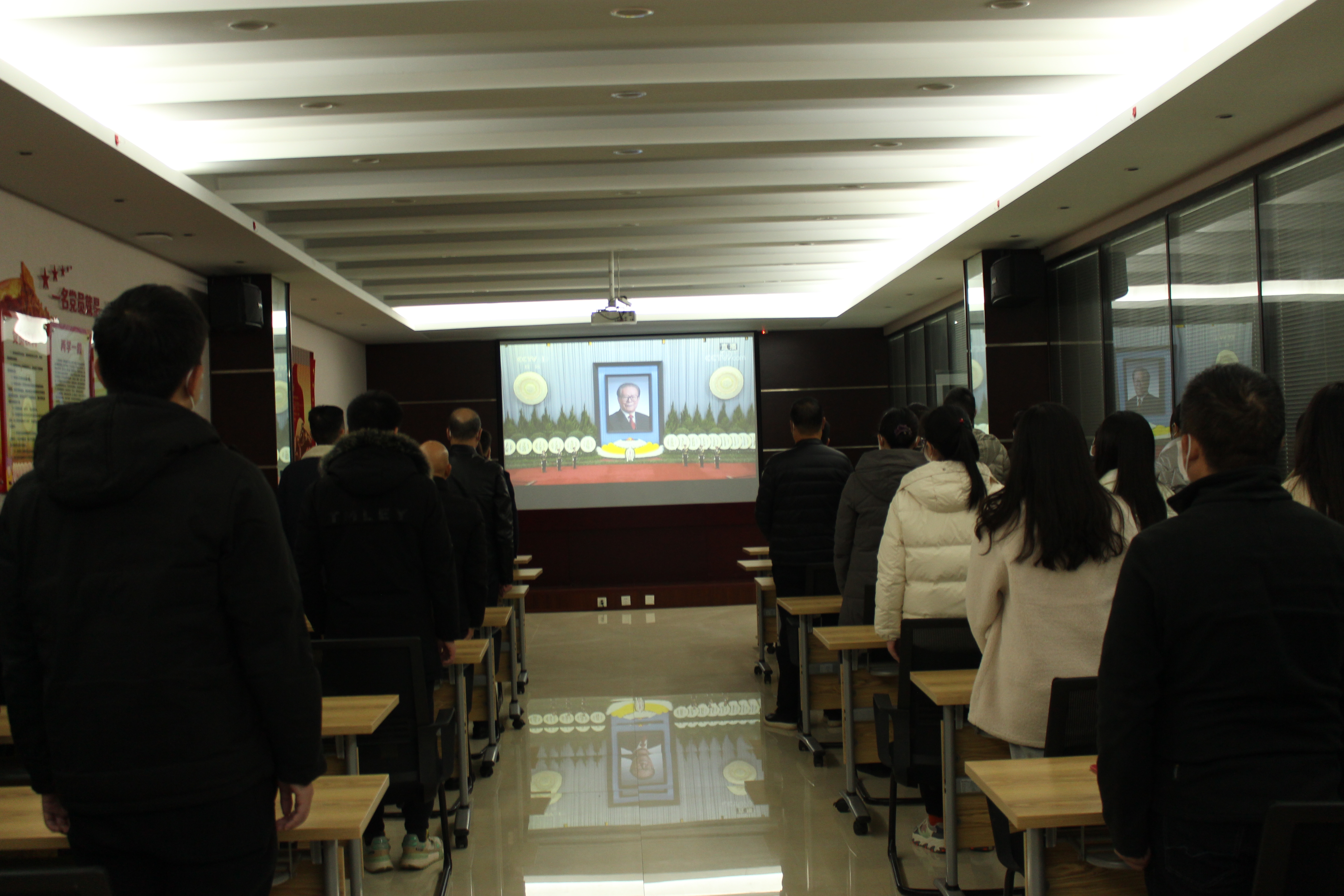 全體員工懷著悲痛的心情,為江澤民同志默哀3分鐘。大家通過直播畫面深切緬懷江澤民同志為黨、為祖國、為人民建立的不朽功勛,追思和學習他為黨和人民事業(yè)不懈奮斗的崇高風范。