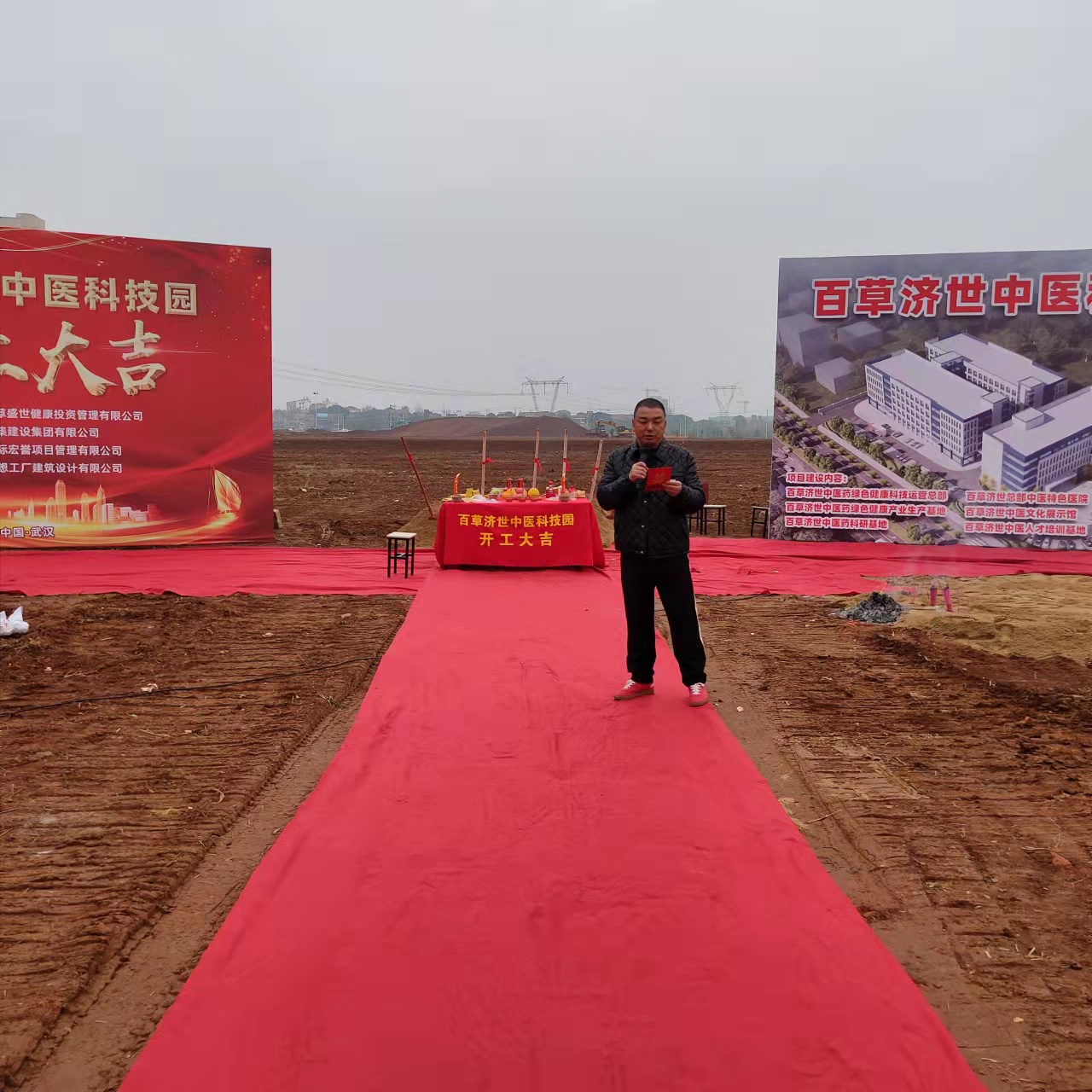 12月8日上午,由湖北大集建設(shè)集團(tuán)有限公司承建的百草濟(jì)世中醫(yī)科技園項(xiàng)目舉行開工儀式。10點(diǎn)18分,在禮花鞭炮聲中,開工儀式正式開始,出席儀式的領(lǐng)導(dǎo)和嘉賓拿起鐵鍬,共同為項(xiàng)目培土奠基。