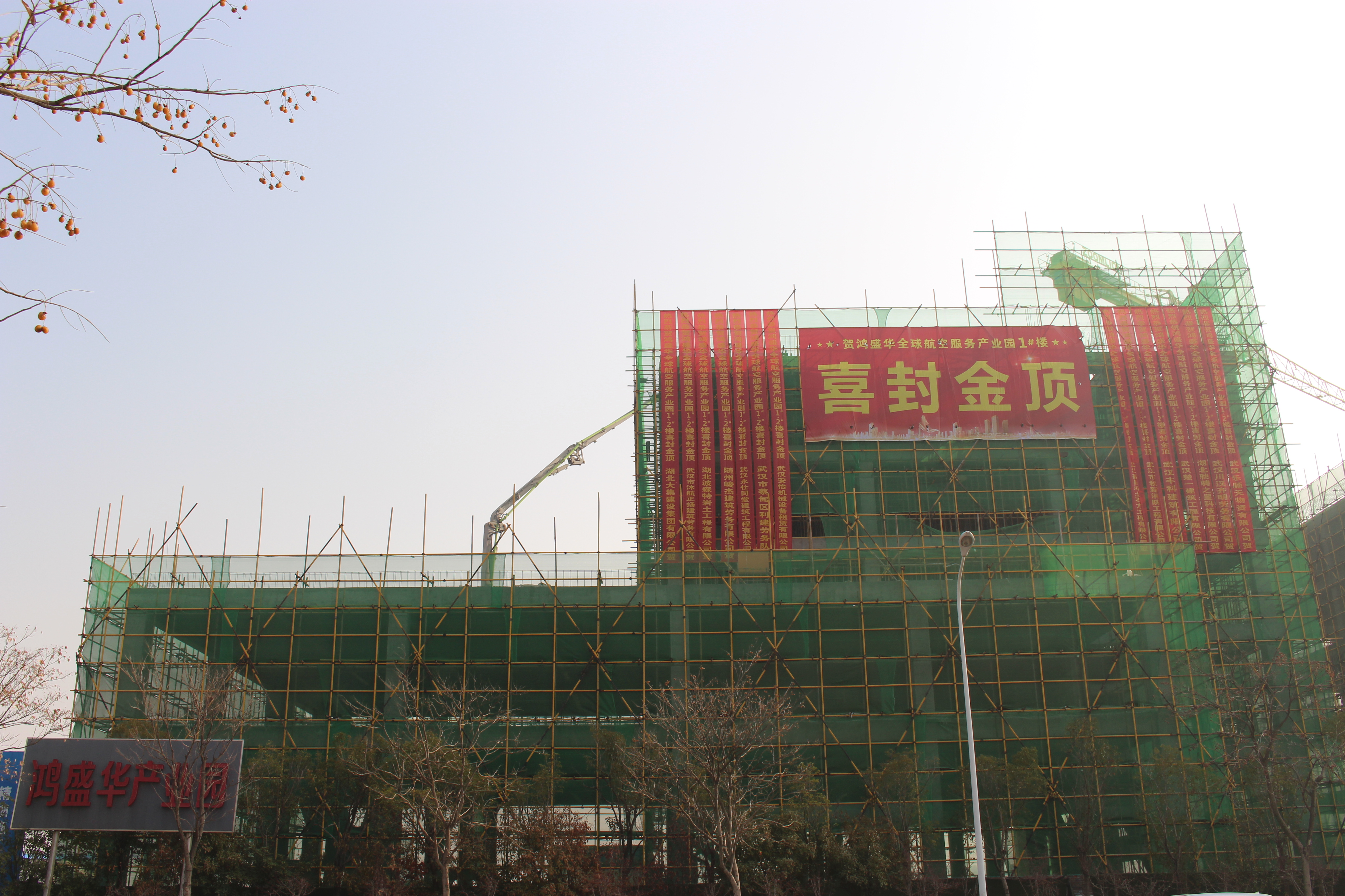 1月9日上午,晴空萬里,惠風和暢,湖北大集建設集團承建的鴻盛華全球航空服務產(chǎn)業(yè)園項目1#廠房喜封金頂。