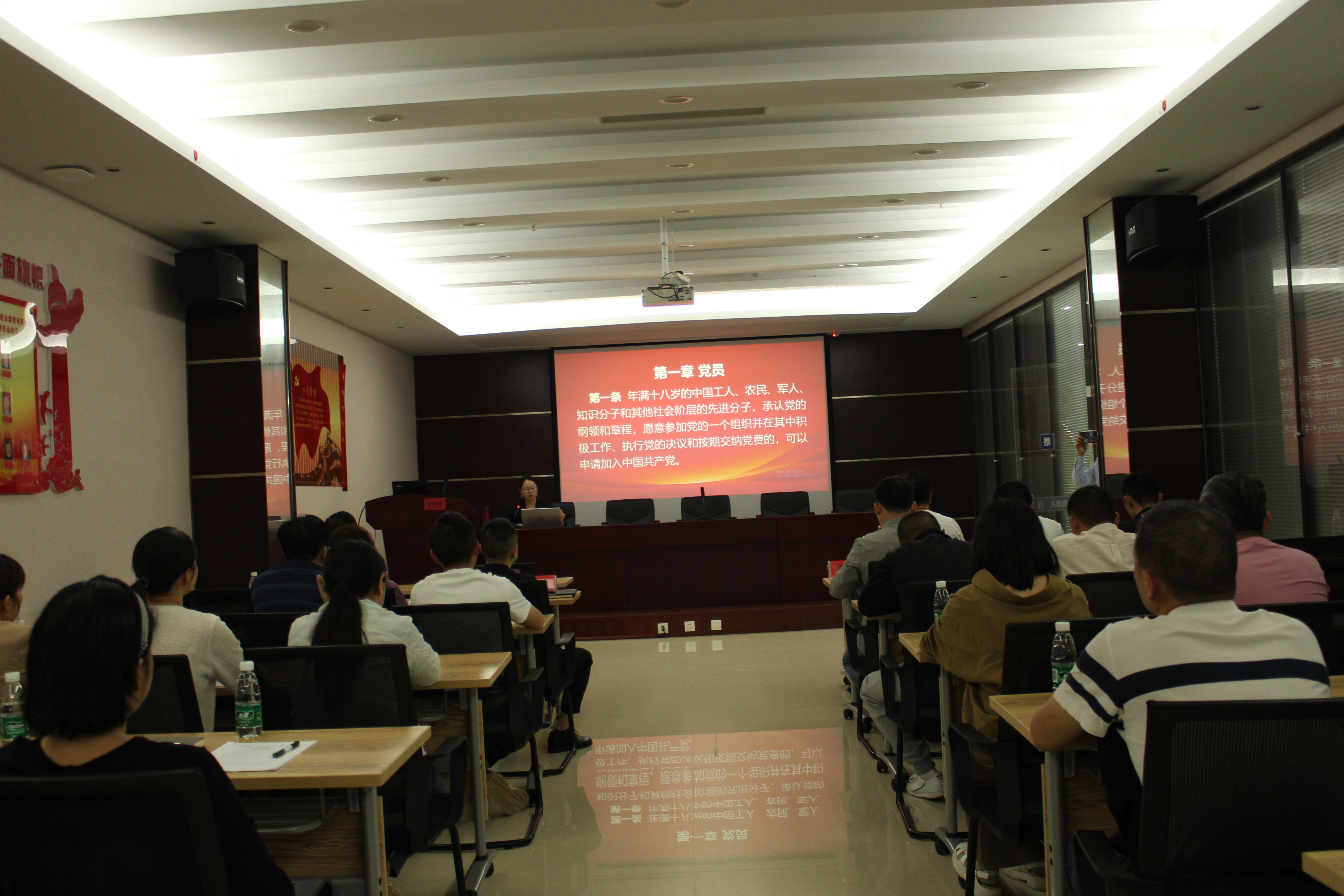 活動(dòng)開始,全體黨員集體誦讀《中國(guó)共產(chǎn)黨黨章》部分內(nèi)容,大家通過誦讀,從中感悟思想、汲取力量、做好表率,讓黨章誦讀聲聲聲入耳、入心!