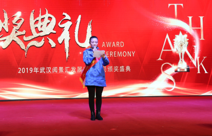 武漢花博匯總經(jīng)理助理卿尚波、運營總監(jiān)黃艷為優(yōu)秀員工頒獎