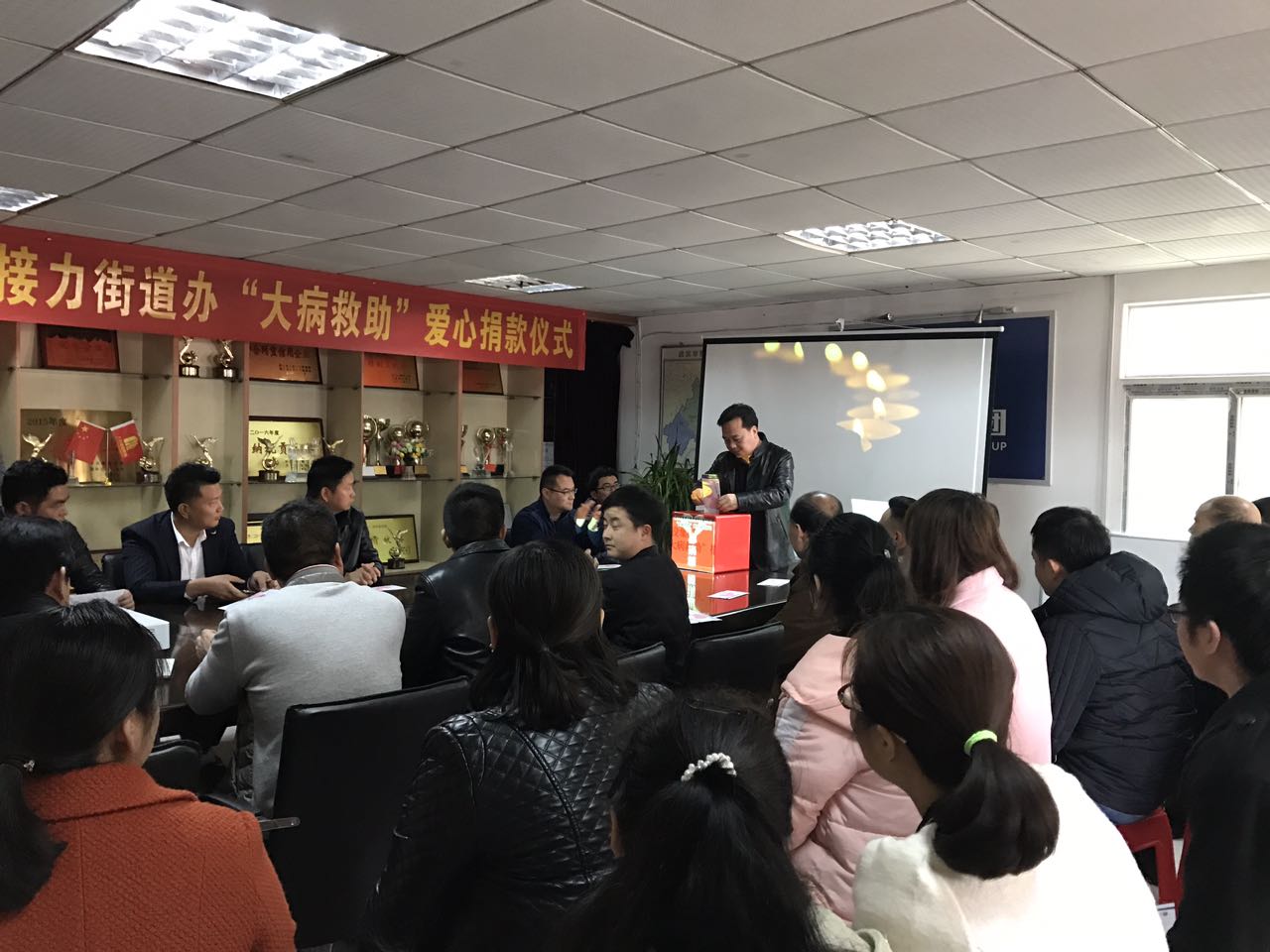 3月21日,湖北大集建設(shè)集團(tuán)響應(yīng)街道辦“大病救助”愛心捐款活動(dòng),在集團(tuán)總部舉行愛心捐款活動(dòng)儀式,陰沉的天氣并未阻擋大集人愛心奉獻(xiàn)的熱情,活動(dòng)現(xiàn)場(chǎng)人員爆滿,熱情洋溢,公司領(lǐng)導(dǎo),項(xiàng)目經(jīng)理和各位員工積極響應(yīng)捐款倡議,踴躍參與,一時(shí)間原本寬敞的會(huì)議室被擠的水泄不通。